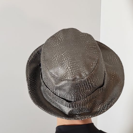 Coupé cousu en simili cuir Hauteur du bandeau environ devant 8 cm dos 7 cm Bord devant 8 cm dos 6 cm Ce chapeau est facile à porter, protège de la pluie Il se roule et se met dans un sac à main facilement