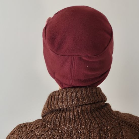 Béret Bonnet Réalisé en polaire de couleur bordeau, orné d'une jolie fleur de couleur différente suivant la taille. Couvre les oreilles. Chaud et agréable,facile à porter.