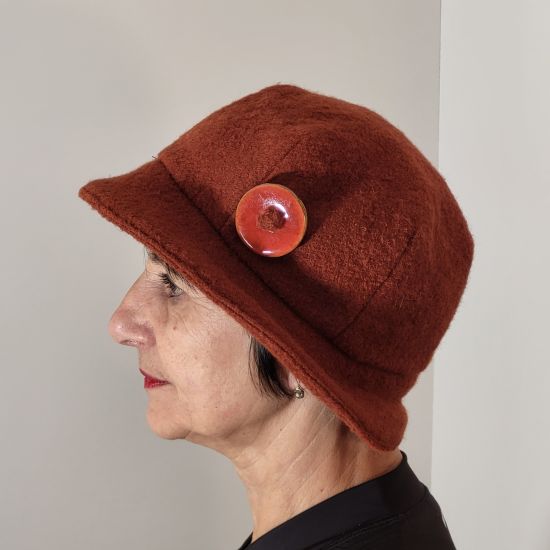 Orné de jolis boutons en harmonie avec l'ensemble du chapeau.