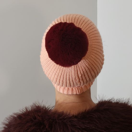 orné d'un joli pompon imitation fourrure en harmonie avec le bonnet.